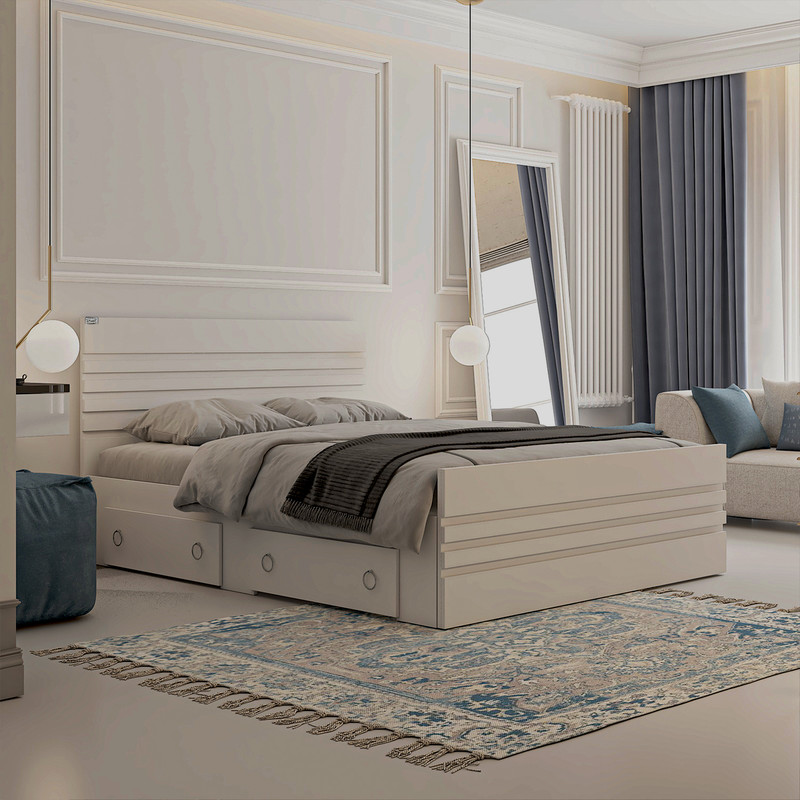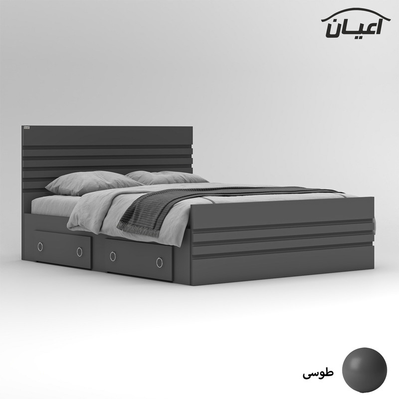 تخت خواب دو نفره ، جنس : مغزی نئوپان با روکش ملامینه ، قسمت کلگی بالا و پایین تخت نوار های دوبل از جنس ملامینه کار شده است ، دارای دو کشو با بازشوی چرخ چمدانی (چرخ ساکی) ، دستگیره های گوشواره ای از جنس استیل است و برای حفظ سلامت کالا و بسته بندی این دستگیره ها از داخل بسته می شود لطفا پس از بازکردن کار با استفاده از پیچ گوشتی جهت آن را تغییر دهید، کفی کار به صورت سه تکه و از جنس نئوپان می باشد ، کالا فاقد تشک است و بایستی تشک 200×160سانت تهیه نمایید. این کالا در رنگ بندی : ( سفید ، طوسی ، مشکی ، قهوه ای روشن ، قهوه ای (گردویی) ، قهوه ای تیره (ونگه) و حالت چند رنگ (قهوه ای ، طوسی) تولید و عرضه می گردد ، این کالا را فقط با لوگو و برند تهیه کنید ، لطفا توجه فرمایید که همواره چند درجه اختلاف رنگ بین تصاویر بارگزاری شده و کالای ساخته شده وجود دارد.