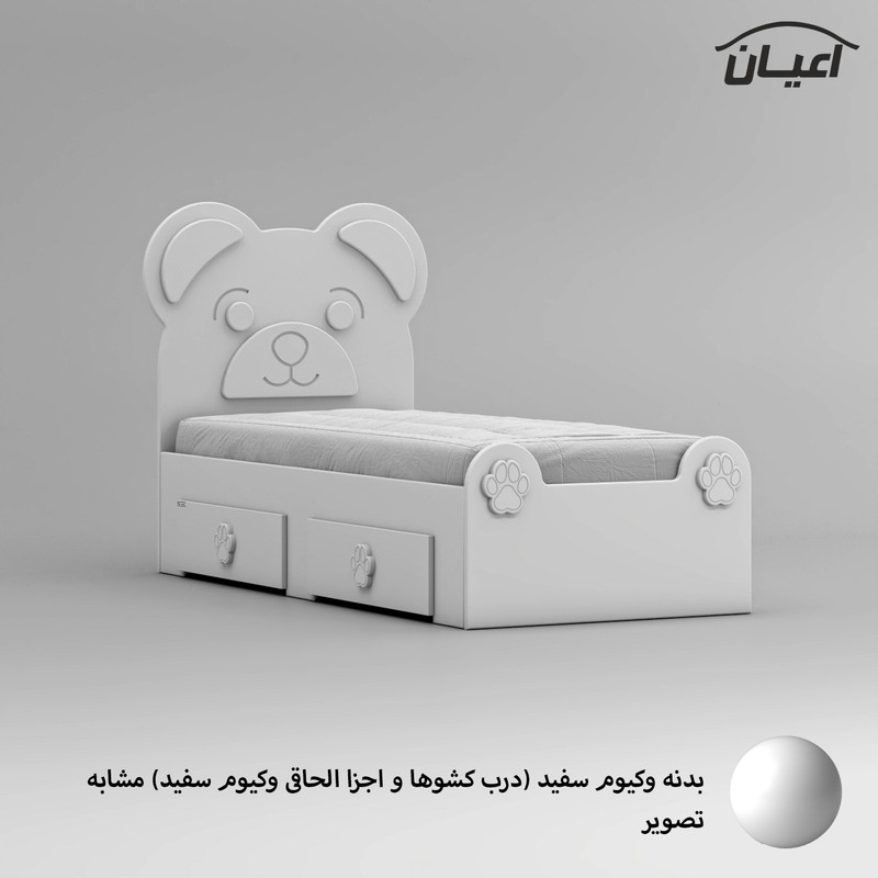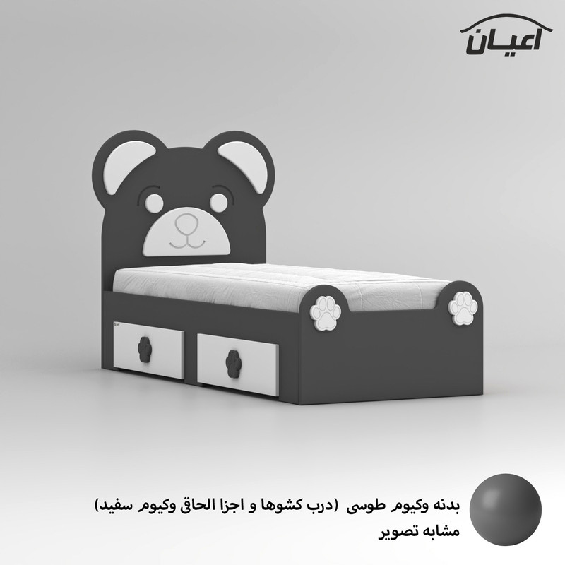 تخت خواب نوجوان ، جنس کلی کالا ام دی اف با روکش وکیوم و جنس کلاف داخلی کشوها نئوپان ملامینه ، طراحی ساده ، شیک و کودکانه (به شکل خرس) ، دارای دو کشو استاندارد با بازشوی چرخ چمدانی (چرخ ساکی) ، ال کالا به صورت مونتاژ نشده صورت می گیرد و نیاز به نصب دارد ، کالا فاقد تشک می باشد ، کفی نئوپان و به صورت دو تکه به همراه چند جفت پایه متحرک است ، سایز تشک مناسب برای تخت خواب (180×80 سانتی متر) است، این کالا با رنگ بندی (سفید ، طوسی ، مشکی ، قهوه ای روشن ، قهوه ای (گردویی) ، قهوه ای تیره (ونگه) ، سبز ، آبی و صورتی) تولید و عرضه می شود. دقت فرمایید که در تمامی رنگ ها درب کشوها و اجزای متصل به کلگی بالا به رنگ سفید می باشد ، این کالا را فقط با لوگو و برند تهیه کنید، لطفا توجه داشته باشید که همواره چند درجه اختلاف رنگ بین تصاویر بارگذاری شده و کالای ساخته شده وجود دارد.