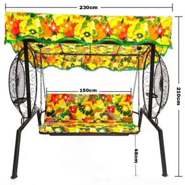 تاب باغی و تاب حیاطی در سایز سه نفره تولید میشود. رنگ بدنه تمام تاب ها کورهای الکترو در دو رنگ سفید و مشکی میباشد. پارچه تشک درون آن الیاف ویژه به کار برده شده و رنگ روکش تاب قابل انتخاب میباشد. ابعاد نشیمن سه نفره 50×150 سانتی متر میباشد. ارتفاع تاب حدودا 195سانتی متر از کف میباشد. قابلیت مونتاژ آسان داشته و قطعات آن شامل دو پایه، میله رابط، صندلی تاب، میله سایه بان و زنجیر اتصال میباشد. سایه بان تاب قابل جداسازی بوده و تشک ها نیز قابل برداشتن میباشد. نهایتا 350 کیلوگرم وزن را تحمل میکنند و مدل دارای جالیوان در کنار تاب میباشد. از این تاب شما میتوانید در تمام فضاها همچون باغ ویلا، حیاط، تراس و ایوان، پشت بام استفاده نمایید. و لحظات شاد ولذت بخشی را در کنار خاده، اقوام و دوستان خود داشته باشید. به یاد داشته باشید که صندلی دارای حرکت عقب به جلو و بالعکس بوده و شادی را برای شما در همه روزها خصوصا ایام تعطیل برای شما به ارمغان میآورد. یادمان باشد که لذت خواندن و مطالعه کتاب و یا کار با گوشی در حالت نشسته روی تاب نیز از خصوصیات و ویژگی این تابها میباشد.
