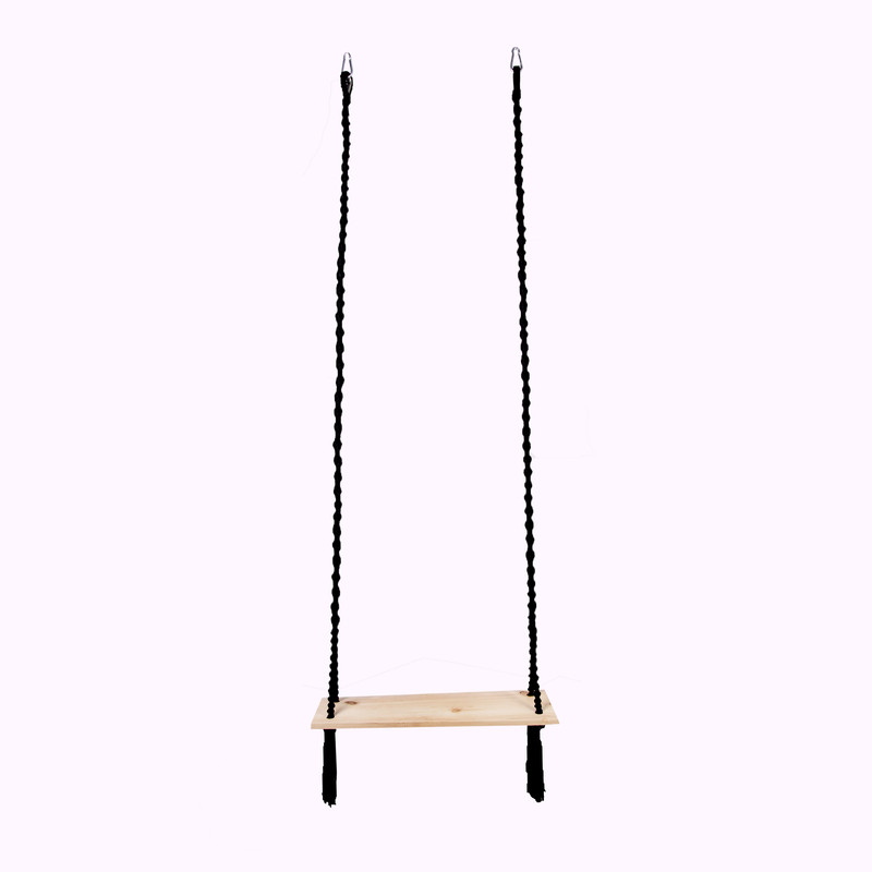 تاب مکرومه مدل تخته ای. جنس دسته های تاب پلی استر است و با سیم بکسل مقاوم سازی شده است. تحمل وزن تا 100 کیلوگرم را دارد. دارای دو قلاب کارابین است که نصب تاب را آسان میکند.