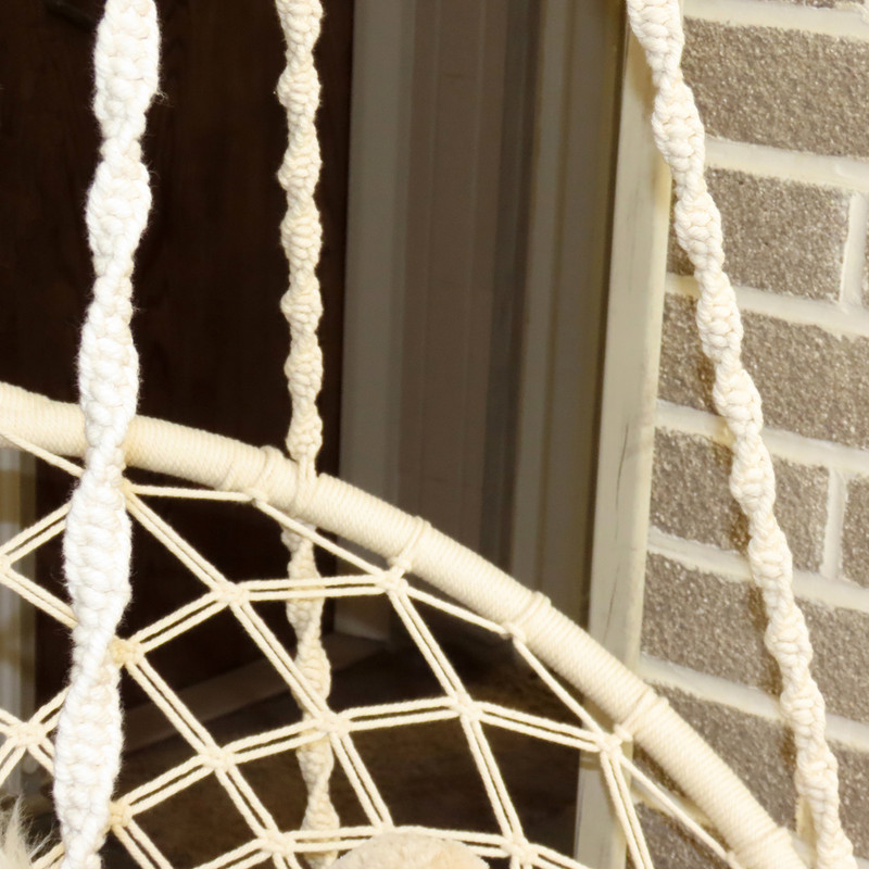 تاب مکرومه دستباف با طراحی هنری و بافت محکم، انتخابی زیبا برای دکور منزل یا فضای باز است. این تاب با نخهای باکیفیت و قلاب مقاوم ساخته شده و بهراحتی از سقف یا پایه مخصوص آویزان میشود. جلوه طبیعی و دستساز آن، حس آرامش و گرما را به فضا میبخشد و میتواند نقطهای چشمز در هر دکور مدرن یا بوهمین باشد تحمل وزن تا 80 کیلو می باشد