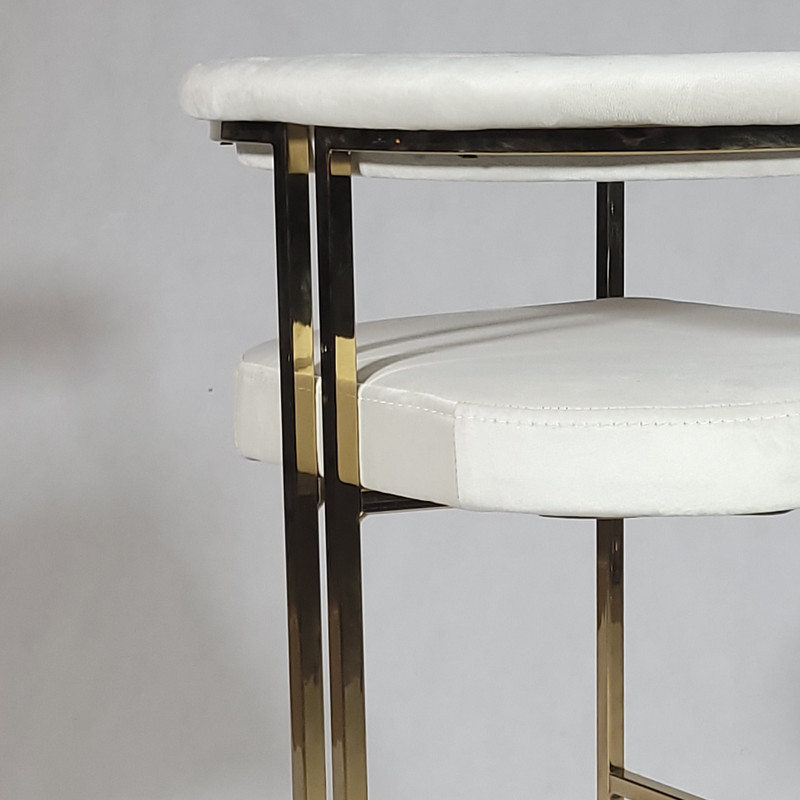 صندلی اپن آندرومدا این صندلی مدرن و جذاب میتواند یکی از بهترین گزینه ها برای جزیره،میز بار یا کانتر آشپزخانه شما باشد. پایه های آندرومدا از جنس آهن با آبکاری درجه یک فورتیک (طلایی) میباشد که عمر این محصول را تا چندین سال بالا میبرد.آبکاری فرایندیست که ذرات و ع مختلفی همانند نیکل،کروم و... پوششی روی سطح فلز ایجاد میکنند که هم موجب جلای زیبا و هم سبب مسدود کردن تماس هوا با فلز شده و از زنگ زدگی آن جلوگیری میکند. کفی این محصول ترکیبی از ام دی اف و فوم سرد فشرده میباشد که ی این محصول را(برخلاف اسفنج و ابر) بیش از پیش میکند. پارچه آندرومدا از جنس مخمل میباشد و از بهترین متریال در تولید آن استفاده شده است. استحکام صندلی آندرومدا تا 180 کیلوگرم تست شده. به علت عمود بودن پایه ها و ضخامت مناسب آهن بکار رفته، این صندلی بسیار با دوام و بسیار سبک میباشد. انتهای هر صندلی 4 عدد ته پایه پلاستیکی تعبیه شده که جلوی سر خوردن روی سطحی که از آن استفاده میشود را گرفته و هیچ صدمه ای به سطح نمیرساند.