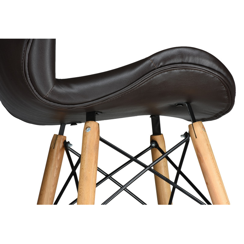 طراحی زیبای صندلی مدل D820I_TKDB در هر فضایی، چه خانگی و چه اداری، ترکیبی از حس آرامش و مدرنیته ایجاد میکند. نشیمن و پشتی صندلی بصورت یکپارچه با رویه چرم (یا پارچه) و پایه ها از چوب راش ساخته شده اند. این چوب که از نوع راش گرجستانی است یکی از بهترین چوب ها در تولید مبلمان خانگی است زیرا مقاومت بالا و کیفیت قابل توجهی دارد و در دراز مدت دچار فرسایش نخواهد شد. پایه های چوبی این صندلی با قطعات کوچک فلزی، مانند برج ایفل بهم متصل شده و استحکام بالایی به صندلی داده اند. بدنه یک تکه آن طوری طراحی شده که با بدن انسان منطبق می باشد این محصول یک صندلی چند منظوره با فرمی فانتزی است و برای قرارگیری در آشپزخانه، کافی شاپ و یا رستوران های فست فود بسیار مناسب است . قسمت انتهایی هر یک از پایه های صندلی از واشرهای پلاستیکی استفاده شده تا علاوه بر آسیب نرساندن به کف، رطوبت و خیسی کف نیز به پایه های چوبی صندلی، نفوذ نکند. این صندلی زیبا توسط چهار عدد پیچ چهارپایه و نشیمن را به مهم متصل کرده و شما میتوانید به آسانی، این دو بخش را از هم جدا و دوباره متصل نمایید. صندلی مدل i820 فضای کمی را اشغال میکند و با رنگ های مختلف و جذاب به محیط خانه یا رستوران شما گرمی و پویایی می بخشد.